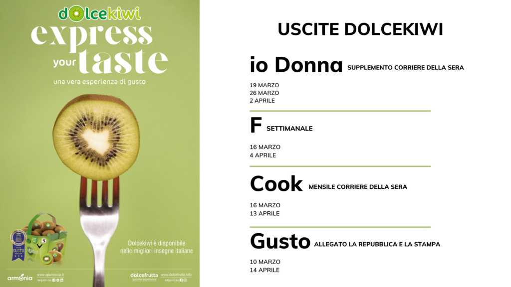Primo protagonista della campagna, Dolcekiwi dal quale 11 anni fa è nata la linea dolcefrutta.