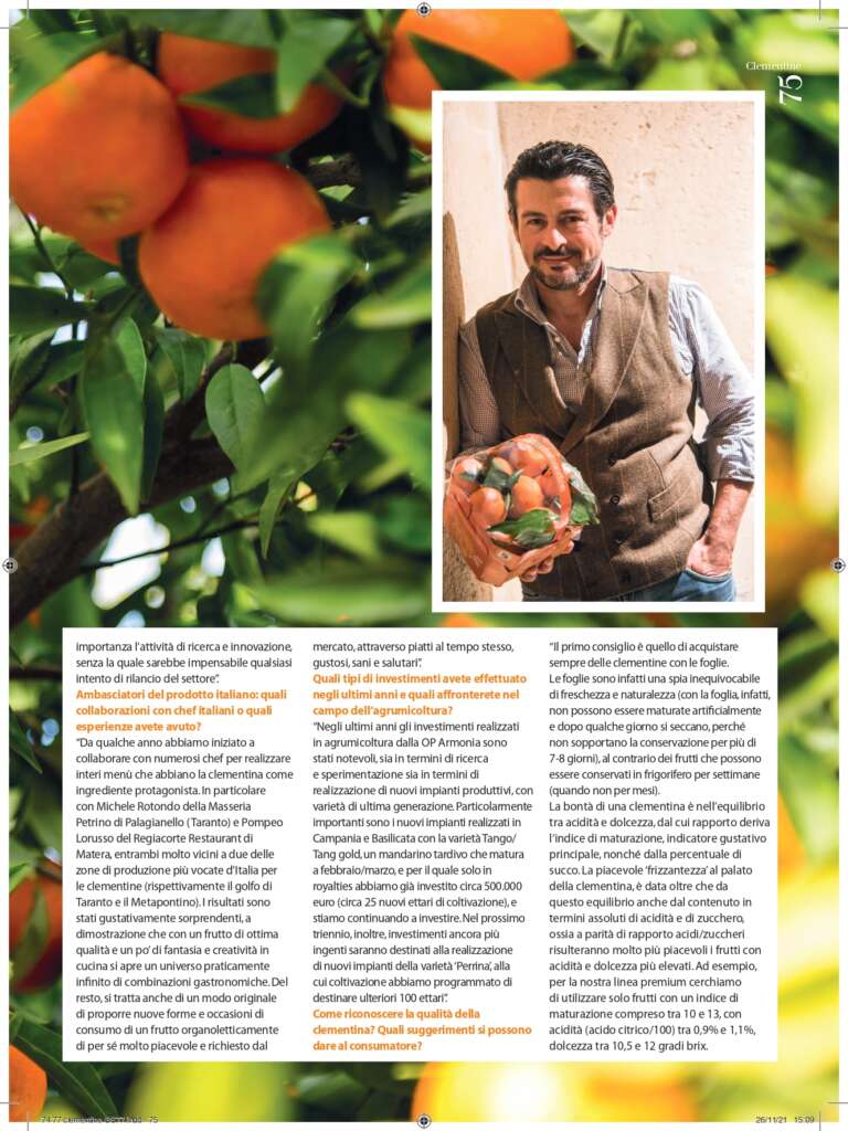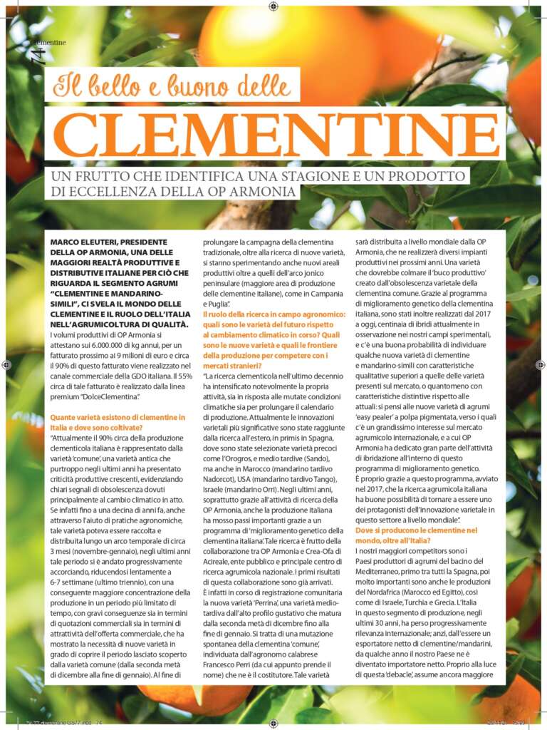 MARCO ELEUTERI, PRESIDENTE DELLA OP ARMONIA, UNA DELLE MAGGIORI REALTÀ PRODUTTIVE E DISTRIBUTIVE ITALIANE PER CIÒ CHE RIGUARDA IL SEGMENTO AGRUMI “CLEMENTINE E MANDARINO- SIMILI”, CI SVELA IL MONDO DELLE CLEMENTINE E IL RUOLO DELL’ITALIA NELL’AGRUMICOLTURA DI QUALITÀ.