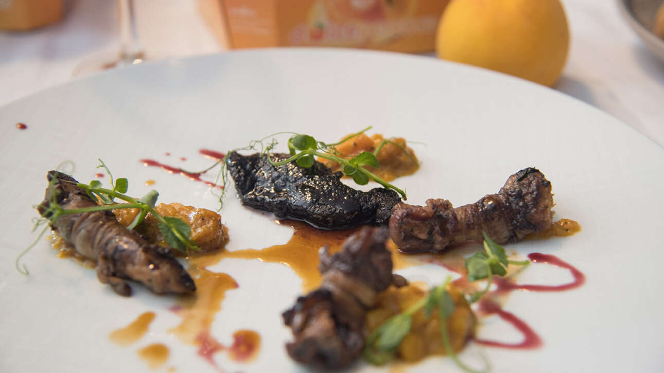 Ingredienti per 1 piatto Torcinelli di agnello, soia, piselli, chatney di percoca e vino rosso 50 gr di torcinelli circa ¾ 20 gr di milza Sale e zucchero q.b. Germogli di pisellini Riduzione al vino 70 gr di primitivo di manduria vino 20 gr di zucchero Fondo di soia 10 gr di soia 30 gr…