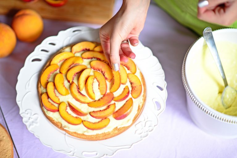 Oggi vogliamo proporvi un dolce delizioso: la torta con doppia farcitura alle pesche.